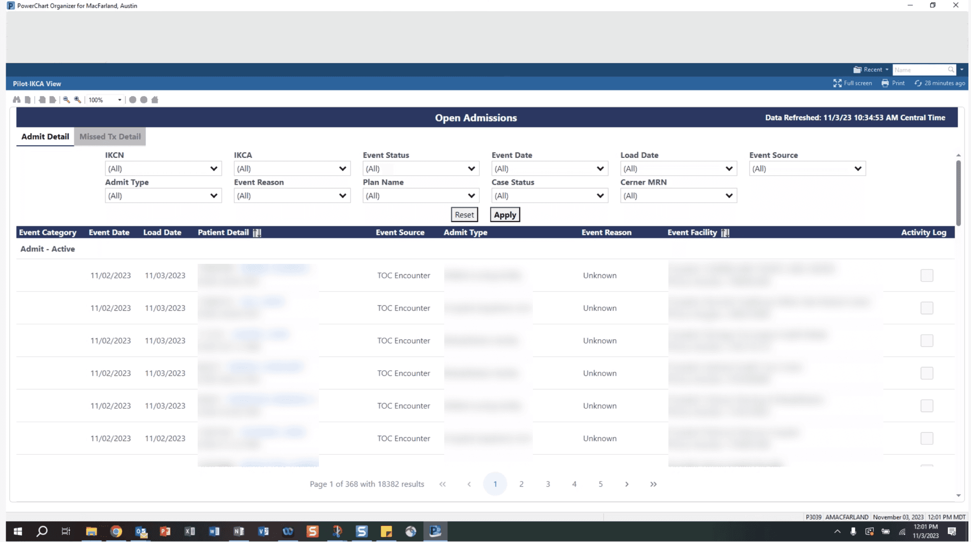 Existing Open Admissions App - Patient Data Not Available for Privacy Reasons